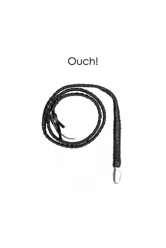 Magnifique fouet tressé en cuir reconstitué, longueur 194 cm, marque Ouch!.