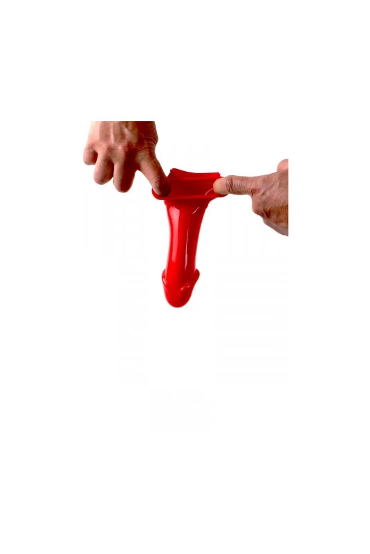 Gaine de pénis rouge, avec emplacement pour les testicules, dimensions 19 x 4,5 cm, pour accroitre les dimensions de la verge.