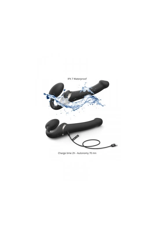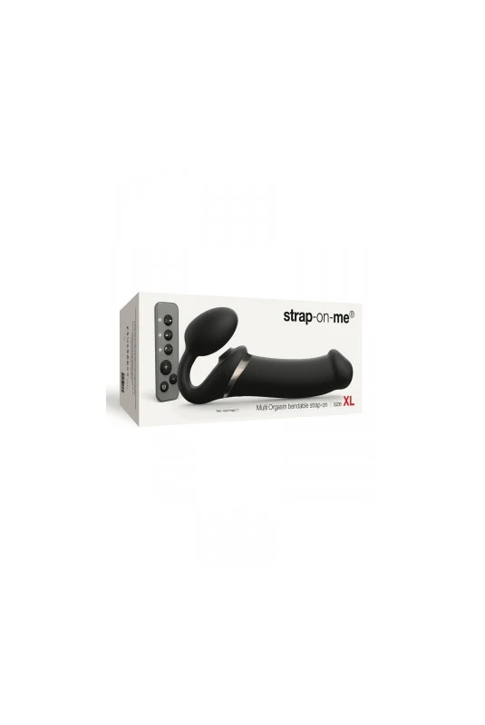 Nouvelle Ă©dition du gode-ceinture anatomique Strap-On-Me vibrant, dotĂ© d’une langue vibrante pour le clitoris. Noir, taille XL.