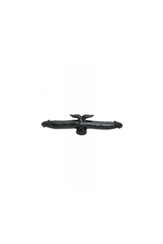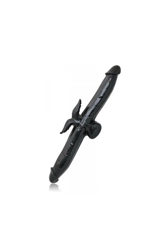 Un double dong avec de belles dimensions dotĂ© d’un stimulateur de clitoris (ou d’anus) sur sa partie centrale.