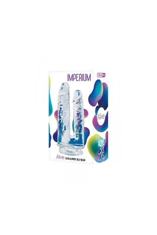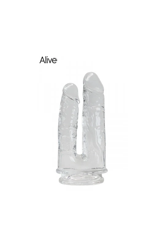 Double gode avec ventouse en Jelly translucide (19 et 17 cm x 4,3 et 3,3 cm) pour les amatrices de doubles pénétrations.