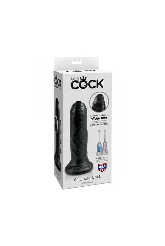 Gode ventouse noir, hyper réaliste avec gland non circoncis que peut se calotter et décalotter à volonté, par King Cock.