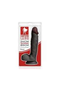 Gros godemichet réaliste noir de 24 cm de long et 5 cm de diamètre, par Captain Red.
