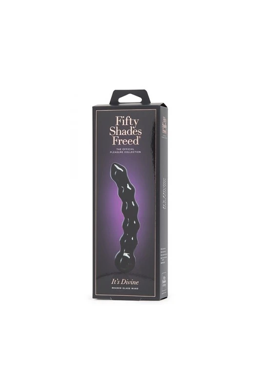 Gode perlĂ© en verre noir « It’s Divine », issu de la collection officielle Fifty Shades Freed.