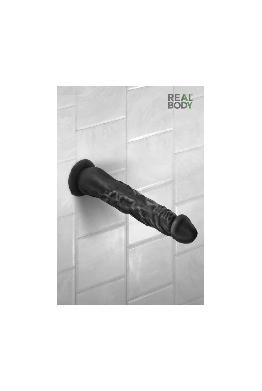 Gode 21 cm noir Real Body Justin, ultra rĂ©aliste avec toucher « rĂ©alistic touch skin » et dotĂ© d’une ventouse puissante.