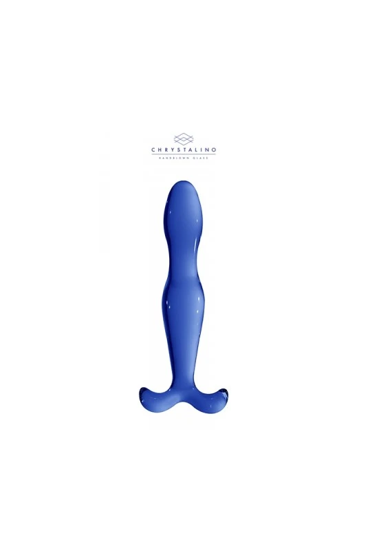 Godemiché artisanal bleu translucide en verre de borosilicate incassable, pour la pratique du sexe anal ou vaginal.