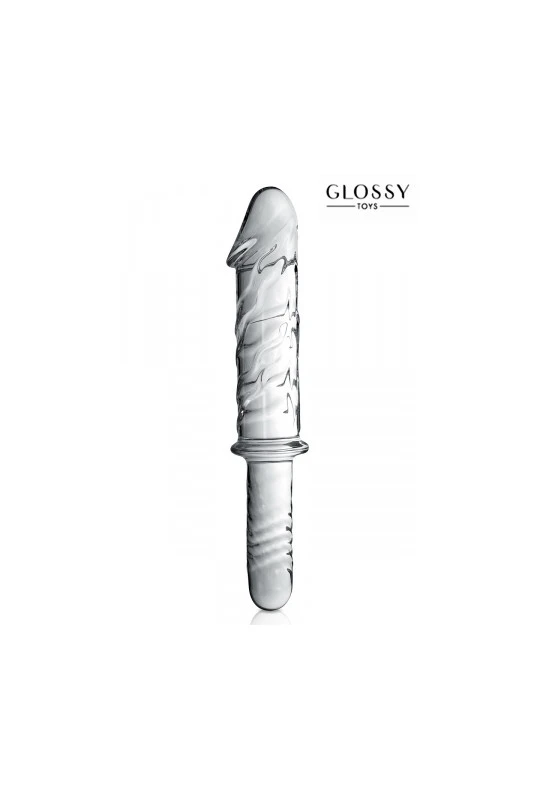 Luxueux dildo 28,5 x 5,5 cm, en verre translucide incassable et muni d’une poignĂ©e.