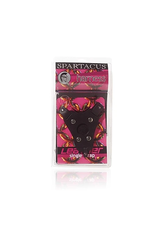 Gode ceinture Spartacus en cuir avec une sangle autour de la taille et une entre les jambes.