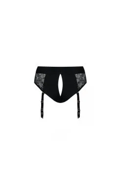 Harnais culotte fendue sur les fesses avec porte jarretelles intégré, en dentelle et microfibre, design seconde peau.