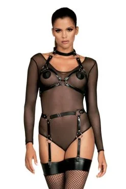 Harnais Fetish Seins Nus BDSM SM Simili Cuir