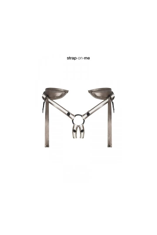 Harnais gode ceinture en cuir au look unique adaptable à de nombreux godes pour des nouveaux jeux coquins, fabriqué par Strap-On-Me.