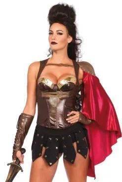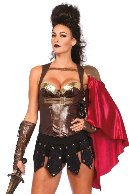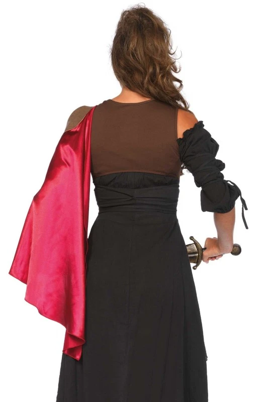 Harnais de guerrière avec cape en satin sur l’épaule.