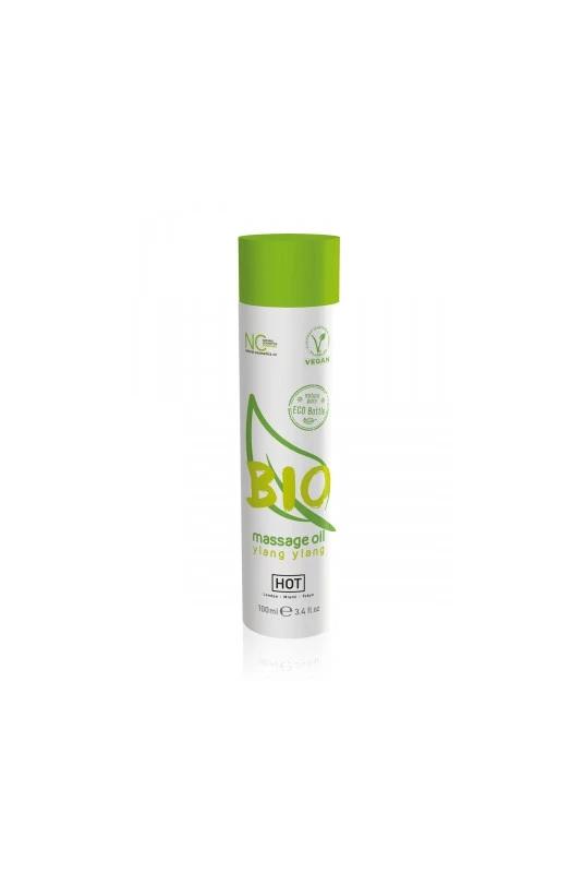 Huile de massage BIO et Végan au parfum érotique et raffiné Ylang Ylang, par HOT. Flacon de 100 ml.