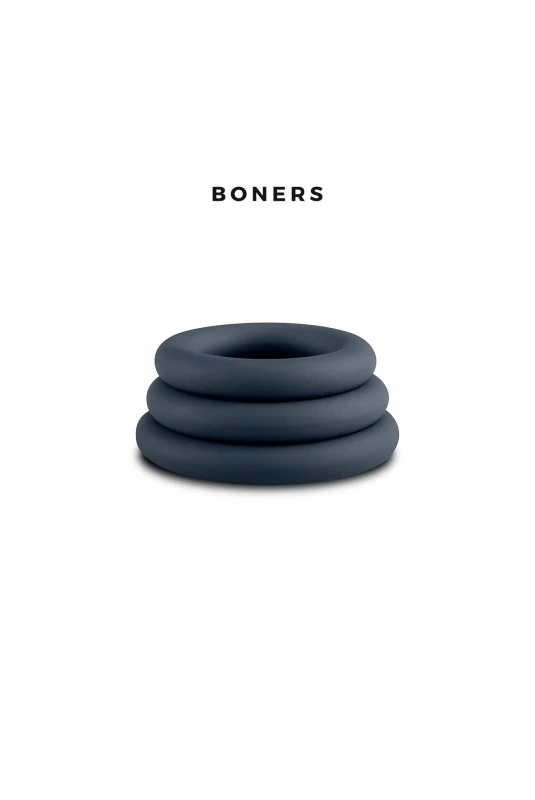 3 cockrings classiques de dimensions différentes en silicone extensible, doux et confortable à porter, idéal pour les débutants comme les experts.