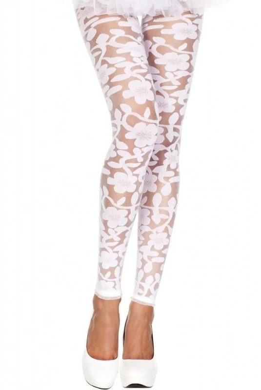 Legging Blanc Fin Transparent Motif Fleuri