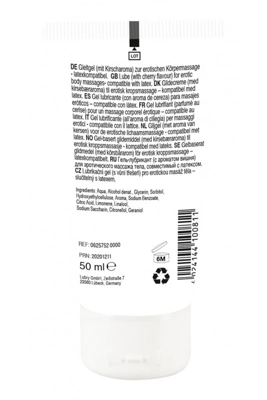 Lubrifiant Gel de Massage Végétalien Comestible Goût Cerise 50ml