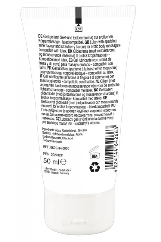 Lubrifiant Gel Massage Végétalien Comestible Fraise/Vin Pétillant 50ml