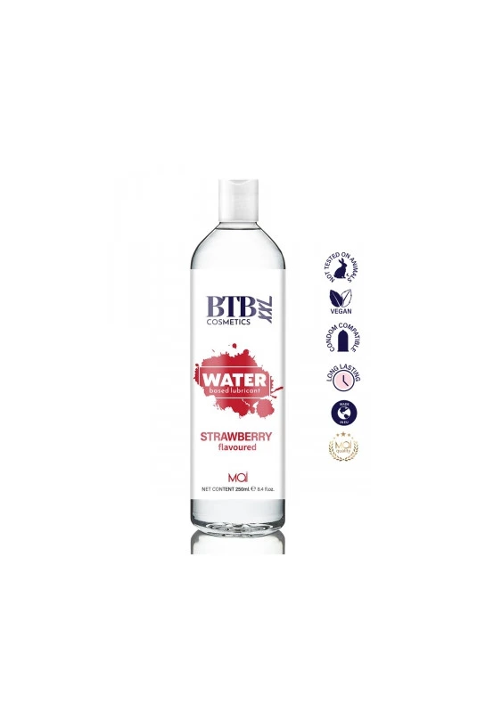 Gel lubrifiant intime Ă base d’eau, au dĂ©licieux parfum de fraise. Tube de voyage de 250 ml.