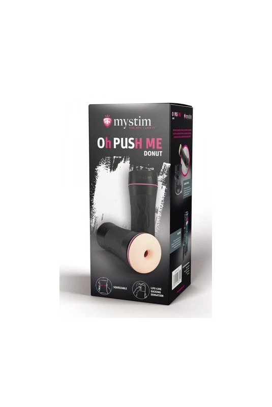 Masturbateur manuel avec serrage et aspiration réglables, gaine ultra douce avec textures et entrée donut non genrée.