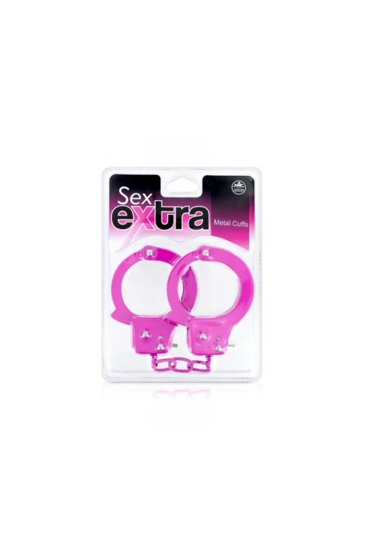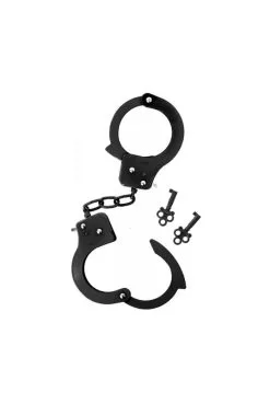 Paire de menottes robustes en métal coloré rose ou noir pour vos jeux BDSM.