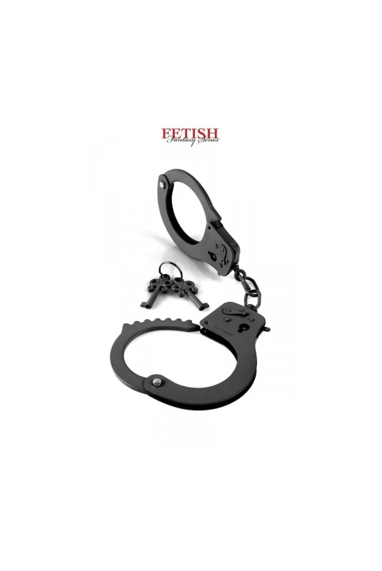 Solide paire de menottes pour poignets en métal noir, pour vos jeux de domination, par Pipedream / Fetish Fantasy Series.