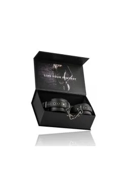 Menottes de bondage pour poignets, réglables, en simili cuir, doublées de mousse pour un confort maximal.