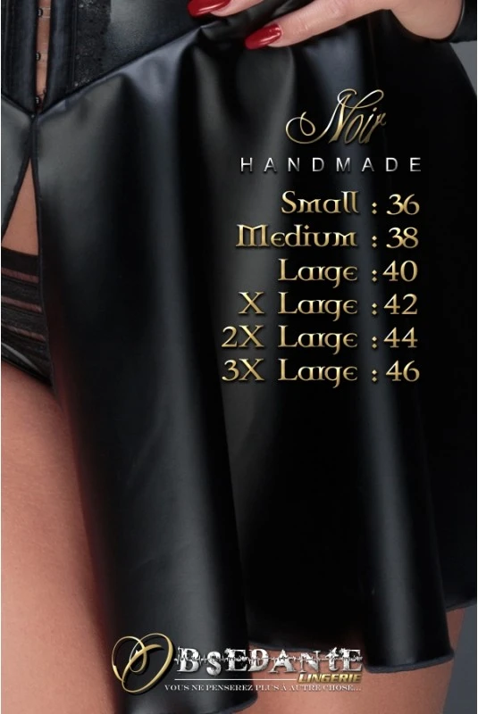 Robe Patineuse évasée à manches longues, courte en wetlook avec une ceinture corset qui affine la silhouette.