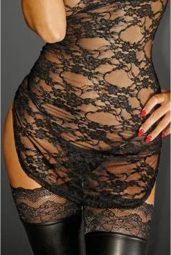 Mini robe tunique fendue sur les cotés, en dentelle transparente.