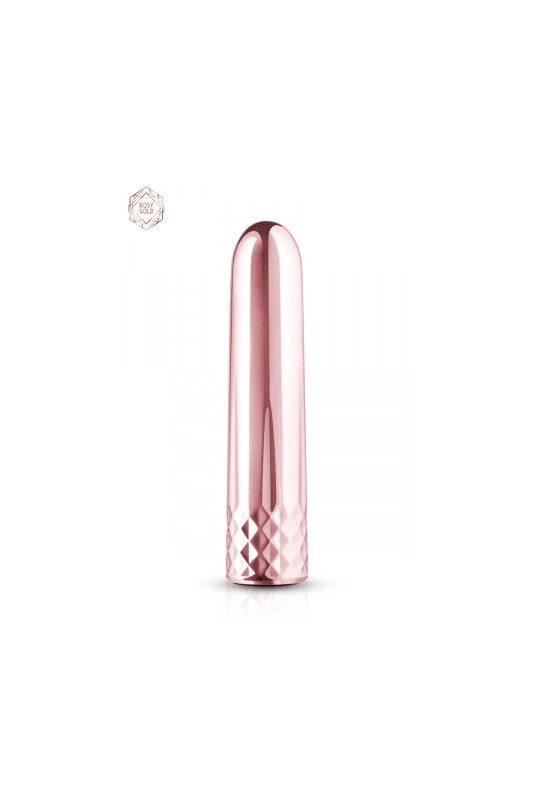 Vibro de voyage rechargeable, étanche, 10 modes de vibrations, avec un design tendance couleur rose gold pour les aficionadas.