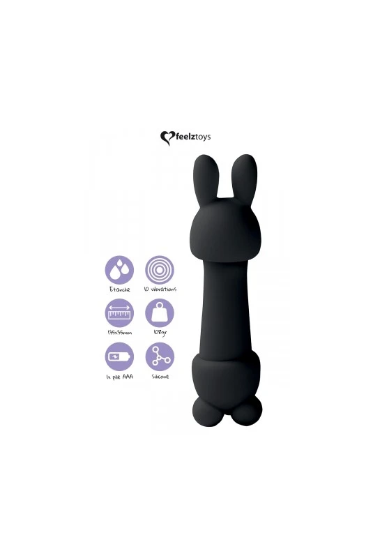 Mini vibromasseur avec 2 embouts de stimulation supplémentaire en silicone, le tout dans un joli sac, par Feelztoys.