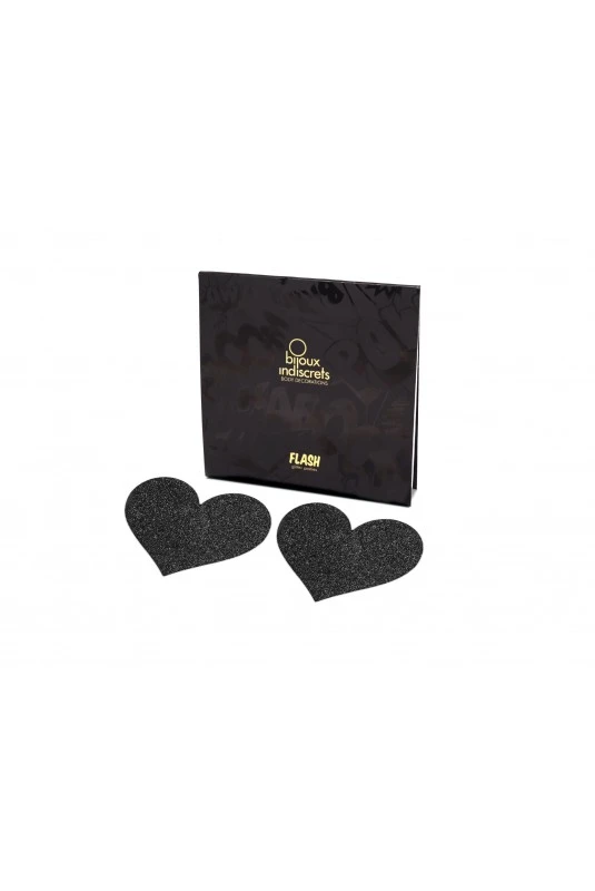 De superbes Nipples Nippies en forme de coeur à paillettes noires. Des caches tétons nippies nipples réutilisables grâce au silicone adhésif de haute qualité. Souple ils conviendront à toutes les formes de poitrines pour les mettre en valeur avec par exemple les ensembles, guêpières , body etc qui sont seins nus 🙂