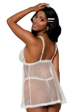 Nuisette Babydoll Blanche avec Perles et String Assorti