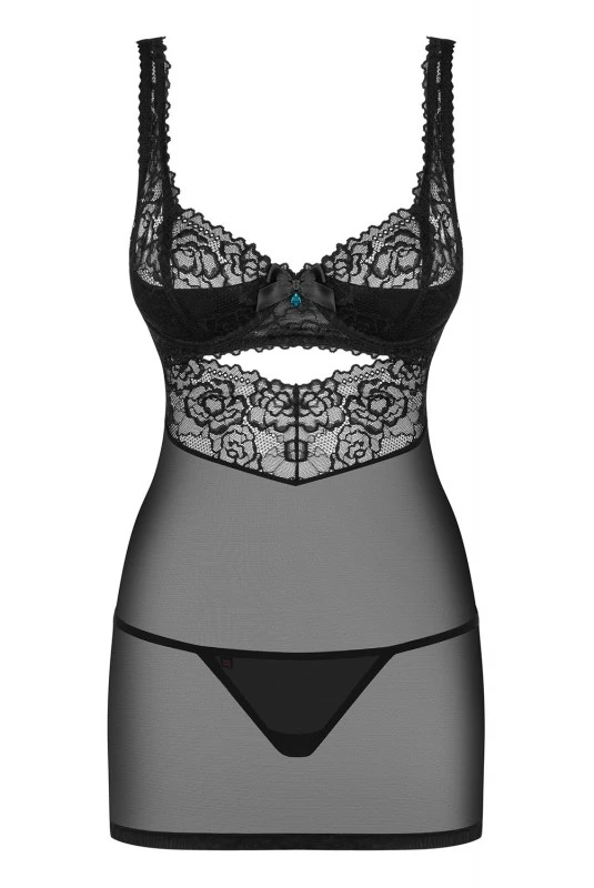 Nuisette Bijou Turquoise Dos Nu Dentelle Noir