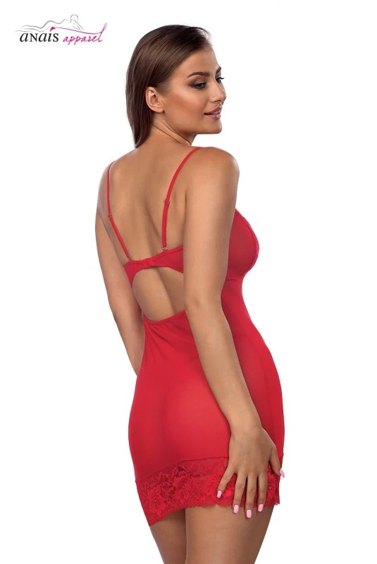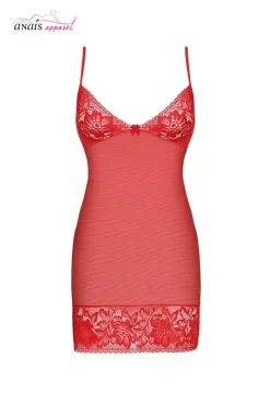 Nuisette sexy en tulle rouge et dentelle, au joli décolleté en V.