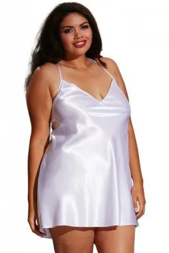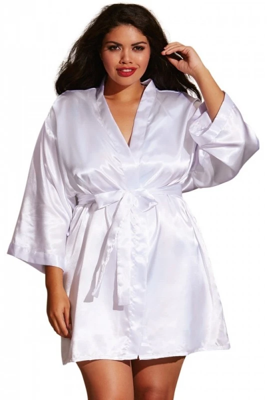 Nuisette et Peignoir Satin Blanc Grande Taille