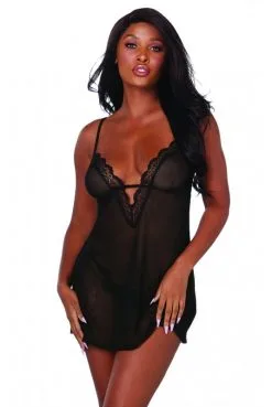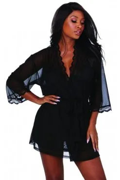 Nuisette et Peignoir Transparent String Noir Grande Taille