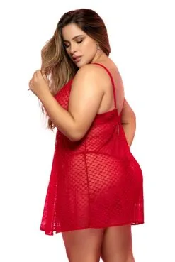 Nuisette Grande Taille Imprimée Petits Coeurs Rouge