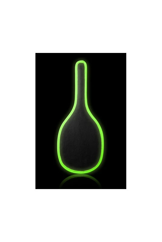 Paddle BDSM noir cerclĂ© d’une couture « Glow In The Dark », qui brille dans le noir.