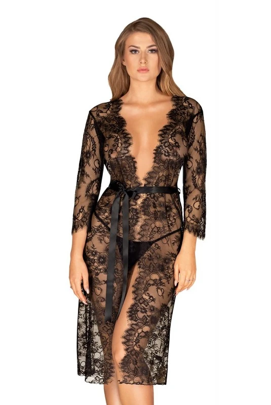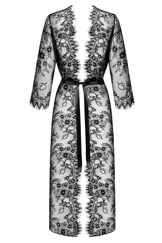 Peignoir Déshabillé Long Dentelle Noir Lashy