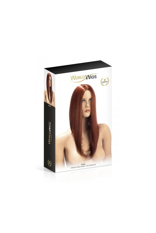 Perruque auburn qualité Premium, avec cheveux longs en carré plongeant auburn pour un look à la fois retro et sexy.