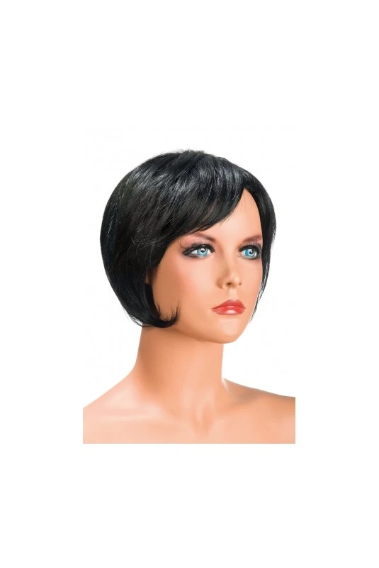 Perruque brune aux cheveux courts en carré moderne à la nuque dégradée.