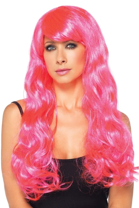 Perruque de cheveux ondulés avec franges. Longueur :poitrine.