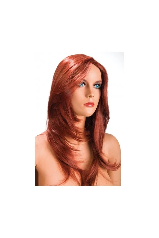 Perruque rousse aux cheveux longs ayants un aspect naturel.