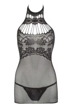 Petite Robe Lingerie Résille Noire Dentelle Poitrine et String