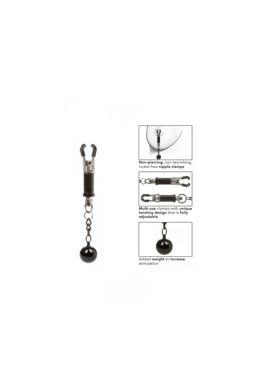 2 pinces BDSM haute qualité à usages multiples, 100% réglables, avec poids de 43g pour accroitre la stimulation.