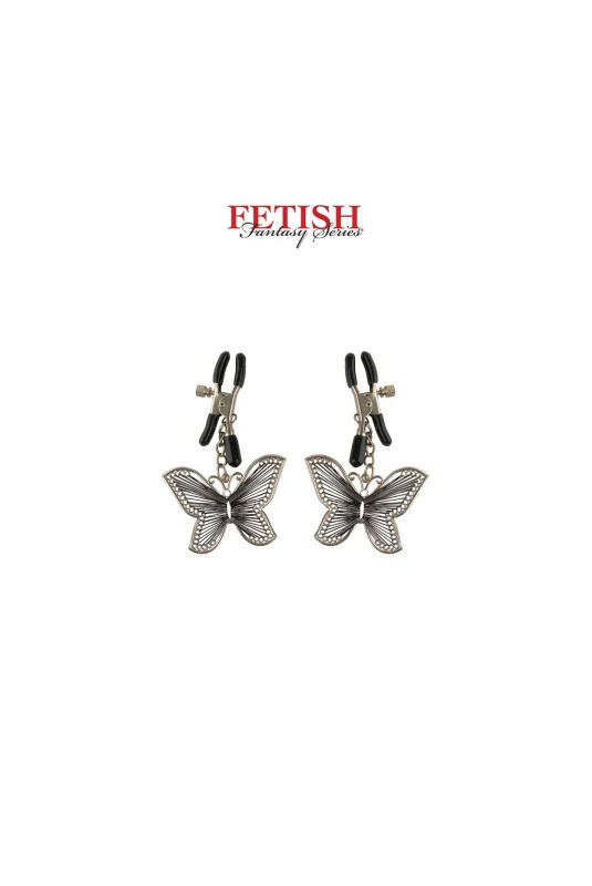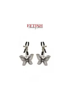 Pinces à tétons réglables, ornées de papillons métalliques en pendentifs, idéales pour s’initier aux jeux BDSM.