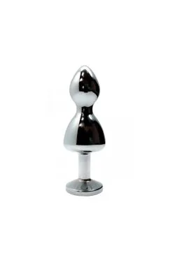 Plug anal / rosebud en métal 10,5 x 3,5 cm, avec double boule spéciale sensations et bijou strass rouge à sa base.