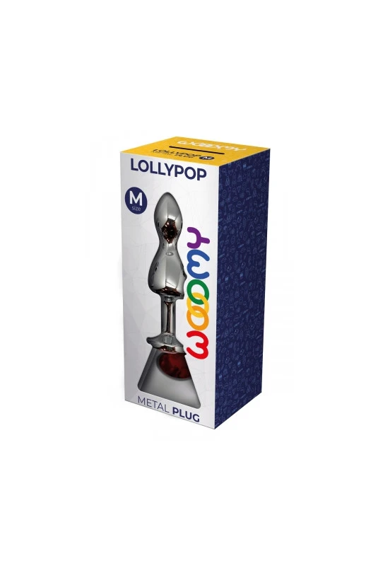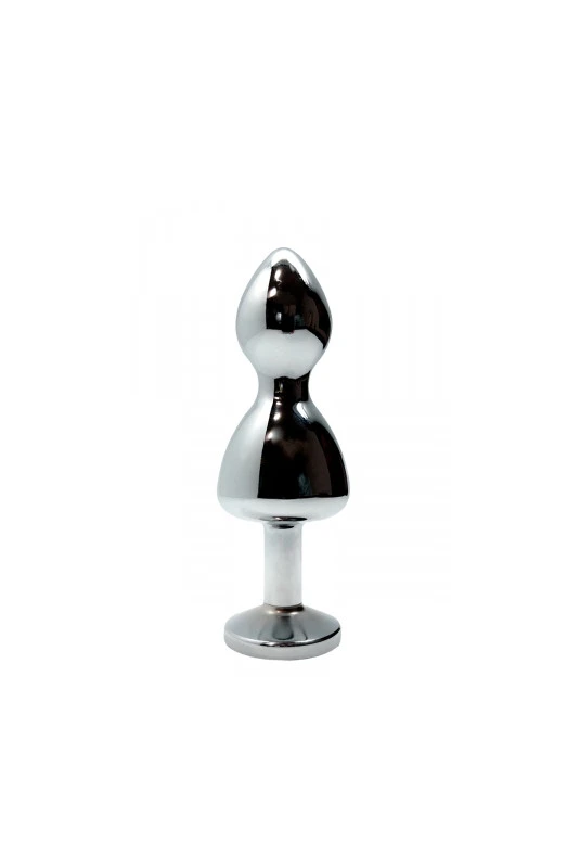 Plug anal / rosebud en métal 9,4 x 3,1 cm, avec double boule spéciale sensations et bijou strass rouge à sa base.