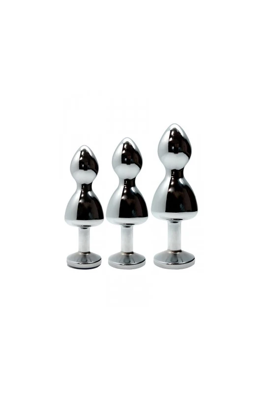 Plug anal / rosebud en métal 8,5 x 2,8 cm, avec double boule spéciale sensations et bijou strass rouge à sa base.