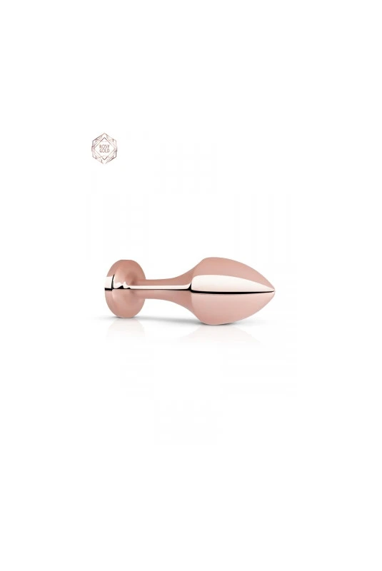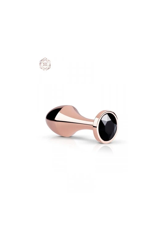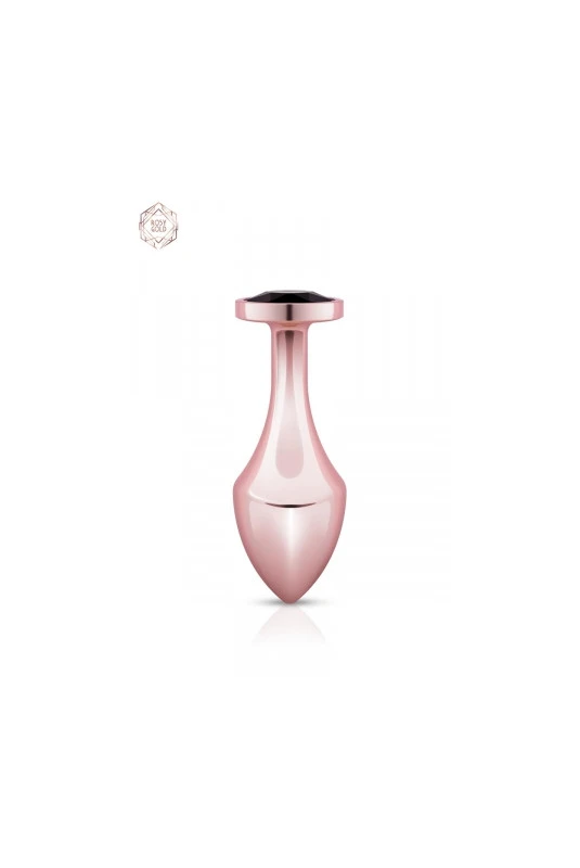 Un Butt Plug unique en son genre en aluminium couleur rose gold, surmontĂ© d’un cristal noir.